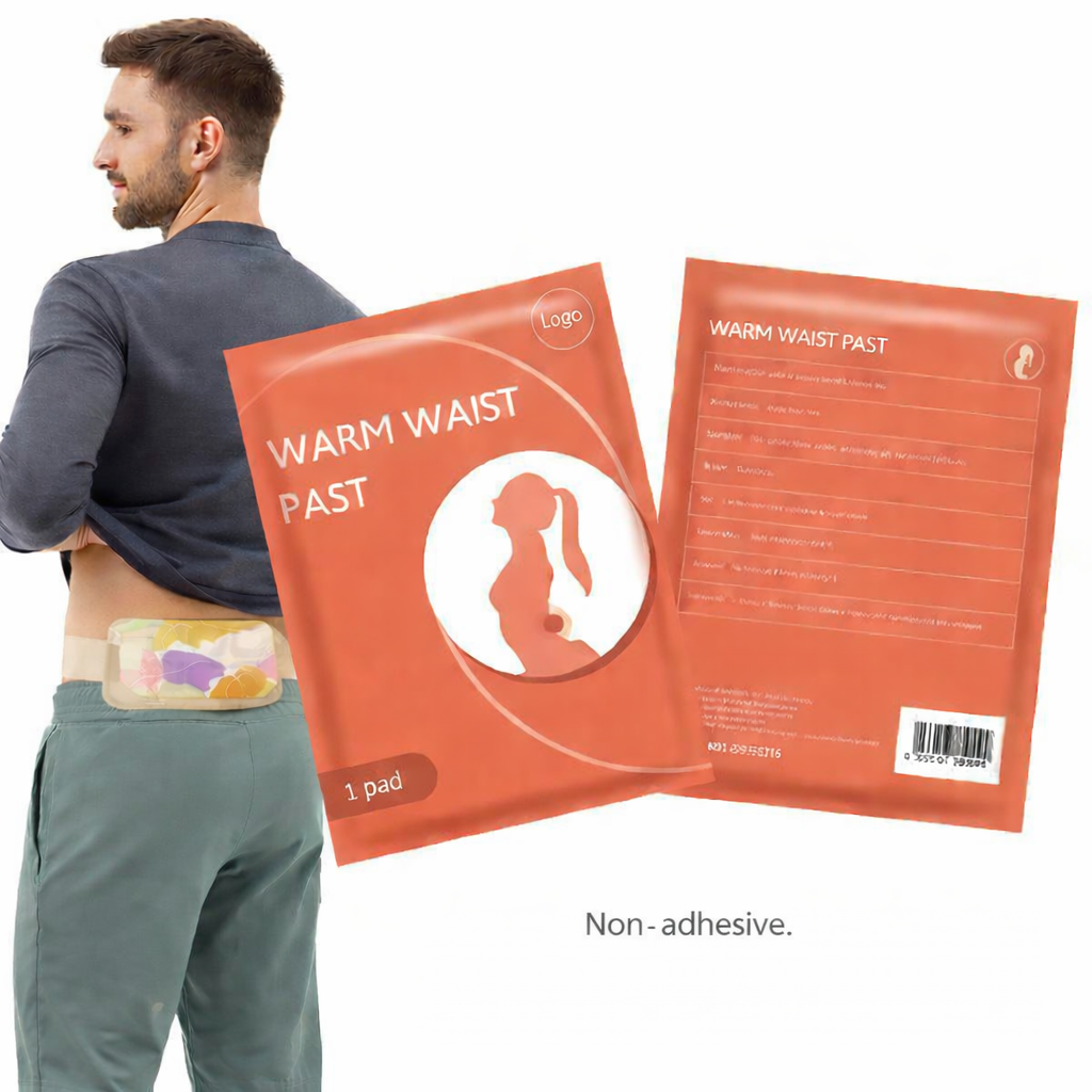 Self-heating waist protector designed to keep the waist and abdomen warm and comfortable.