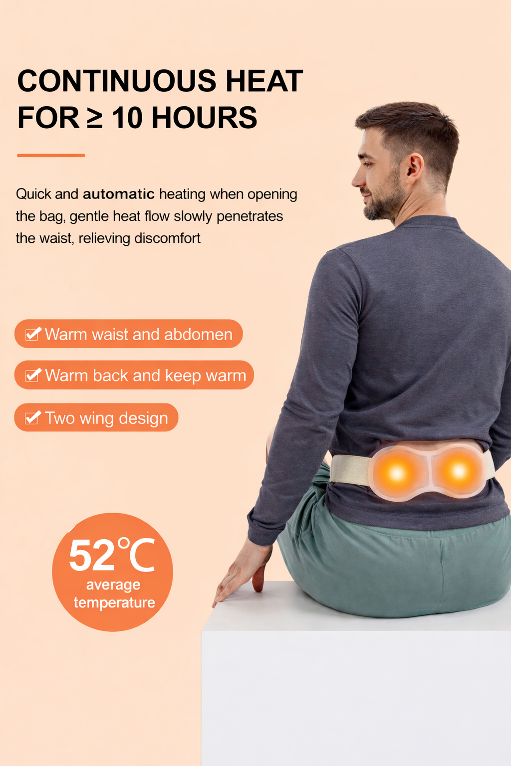 Adjust the tightness comfortably and enjoy warmth for up to 6 hours.