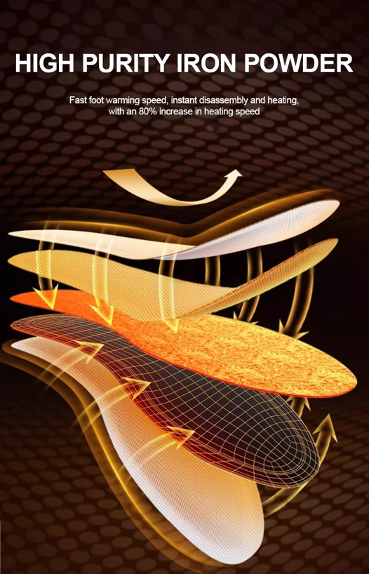 Self-heating foot warmer insoles designed to keep feet warm in cold conditions.