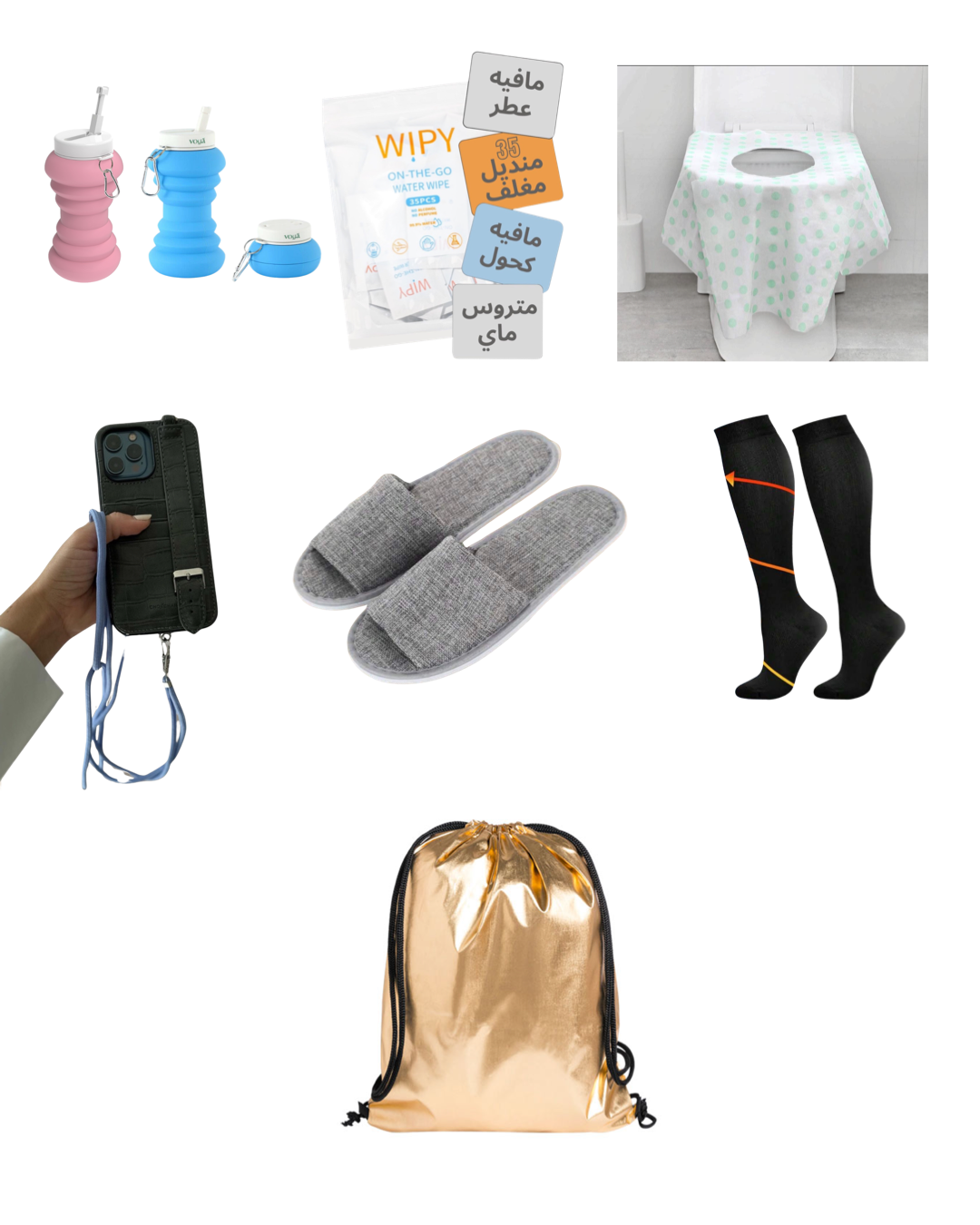 A compact travel kit designed for comfort and hygiene during flights and transit.