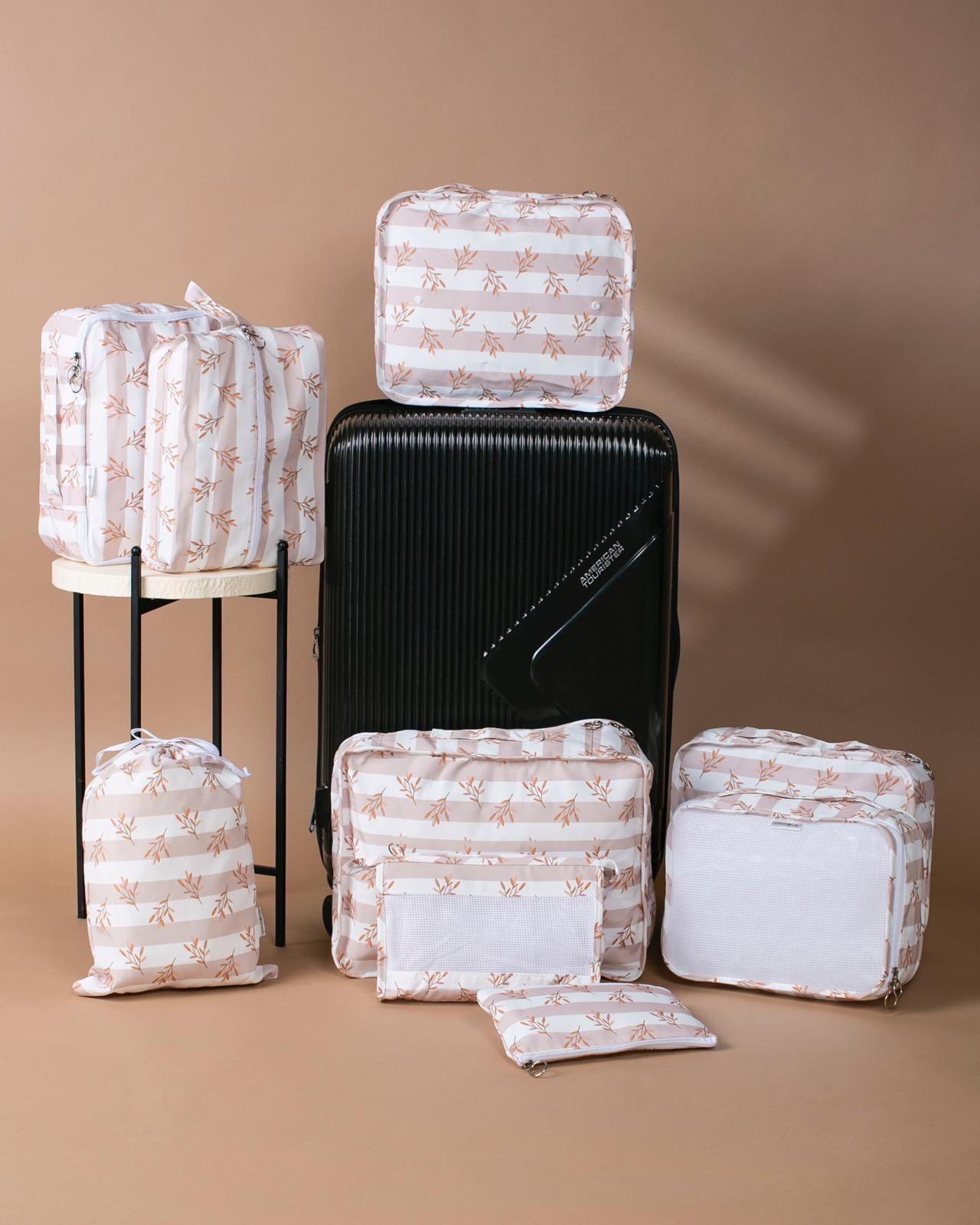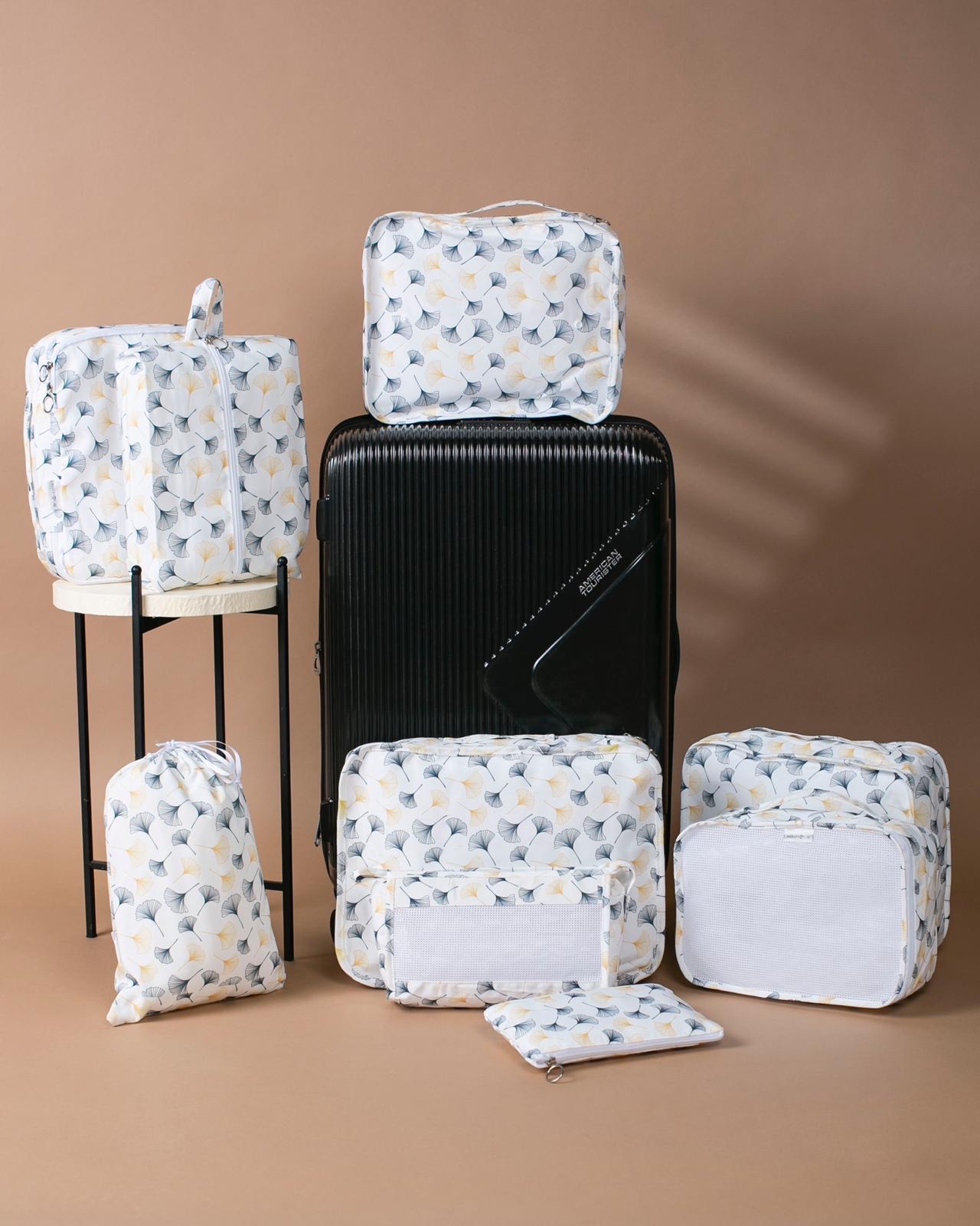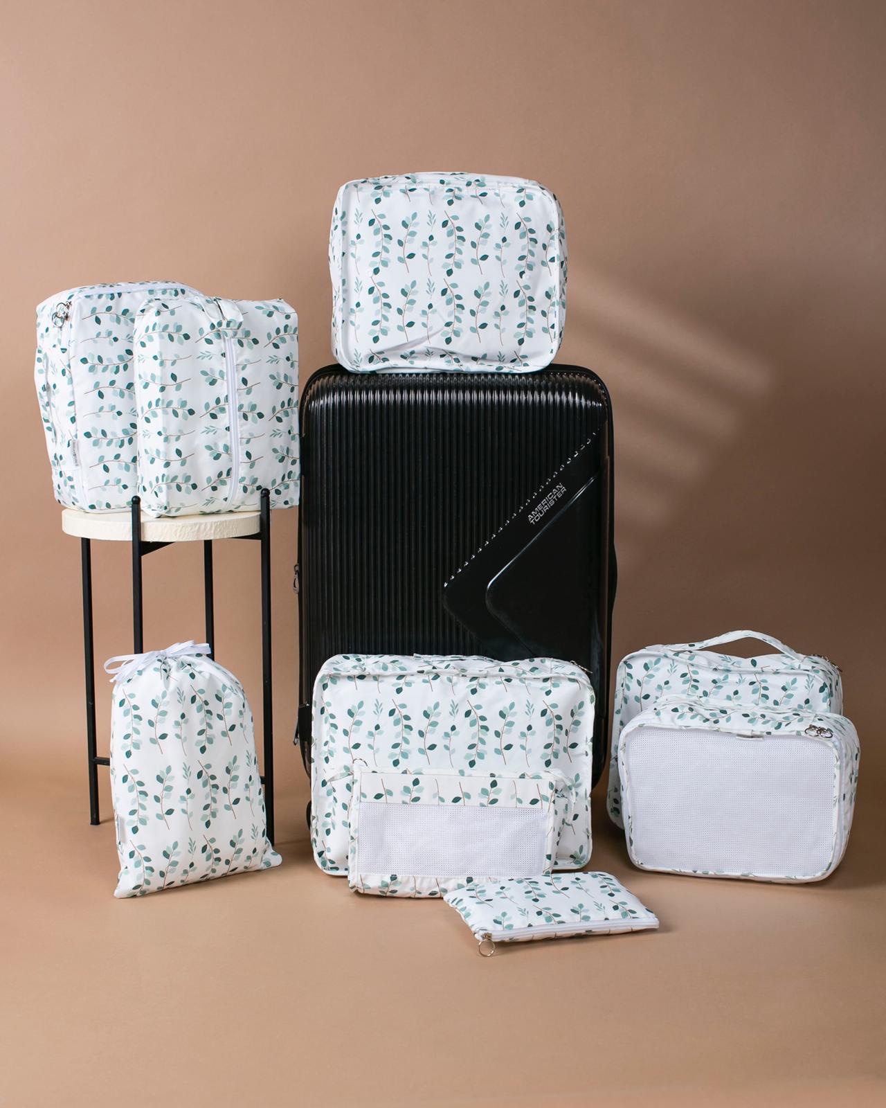 Our distinguished set includes 9 organizers in various sizes and designs, specially crafted to arrange your luggage, wardrobe, or personal items in an organized and efficient manner. These organizers help you keep your essentials neat, accessible, and well-arranged, making your travel, home, or work life easier.